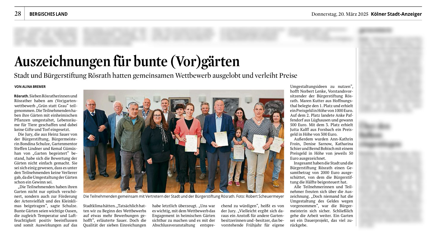 Artikel im Kölner-Stadtanzeiger, 20. März 2025